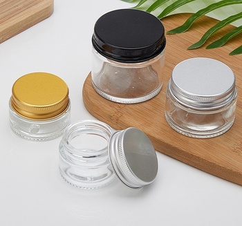 Cosméticos Vacío Transparente Crema Tarro de vidrio Crema Polvo sólido Paquete de prueba Frasco dividido portátil con borde Curl Tapa de aluminio
