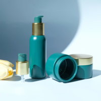 Envase de producto vacío para el cuidado de la piel, botella redonda de bomba de vidrio para loción verde mate de 50ml con tapa de aluminio