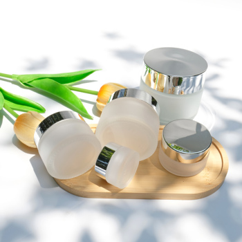 नए फ्लैट खाली सौंदर्य प्रसाधन अनुकूलित रेशम मुद्रण लोगो ग्लास क्रीम 100 जी इलेक्ट्रोप्लेटेड ढक्कन पीपी सफेद सर्कल के साथ