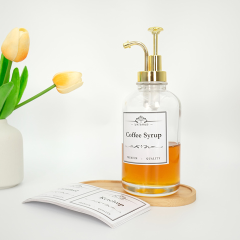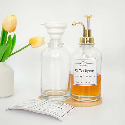 Botella de vidrio de 500ml con bomba dorada para dispensador de jarabe de café